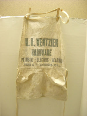 vintage carpenters apron h. h. wentzien hardware gladbrook iowa