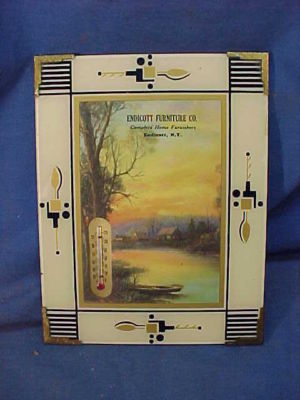 Title (ebay affiliate link): 1930s ART DECO Design ADVERTISING THERMOMETER Endicott NY FURNITURE CO.