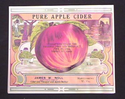 Title (ebay affiliate link): 1906 James Noll Apple Cider Fruit Label Vinegar Apple Butter Martinsburg WV