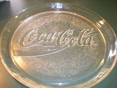 preowned clear glass coca- cola tray