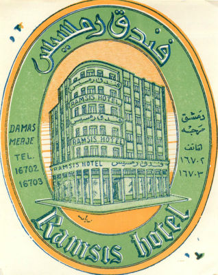 DAMASCUS SYRIA RAMSIS HOTEL VINTAGE TRAVEL LUGGAGE LABEL