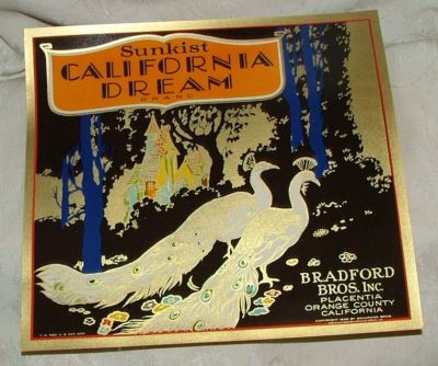 Title (ebay affiliate link): 1928 Sunkist California Dream Fruit Crate Large Label Peacocks Gilt SCARCE L@@K