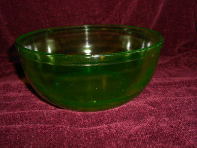 Title (ebay affiliate link): Vintage green depression glass mixing bowl 9" Three days only!!