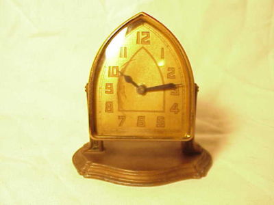 Title (ebay affiliate link): RARE ANTIQUE LUX METAL WIND UP MECHANICAL GOTHIC SHELF CLOCK STAND WATERBURY