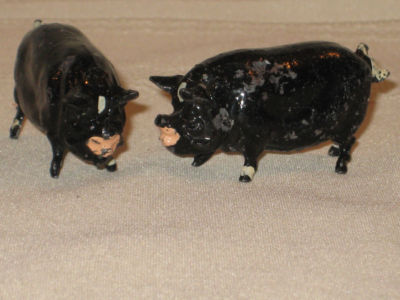 2 VTG BRITAINS LTD METAL LEAD TOY BLACK FARM ANIMAL PIG SOW BOAR FIGURINE