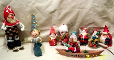 Title (ebay affiliate link): Lot of 9 Vintage Christmas Pinecone Elf Gnome Ornaments