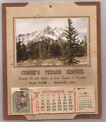 Title (ebay affiliate link): 1961 VINTAGE CALENDER, CURRIES TEXACO SERVICE, BLACKFALDS ALTA CANADA, COMPLETE