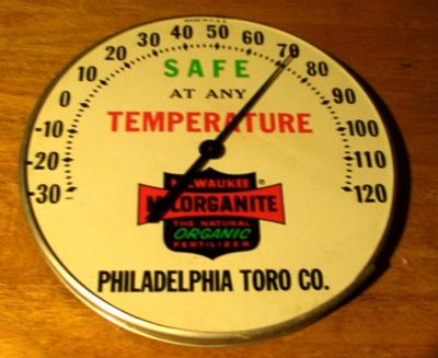 Old Ad* thermometer Phila* Toro Co. Milwaukee Fertilizer Works!