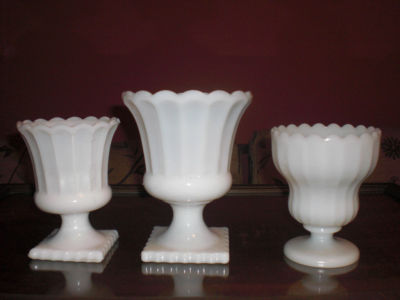 Title (ebay affiliate link): Lot of 3 Milk Glass Planters/Vases - Scalloped Tops, Footed - Great 4 Wedding