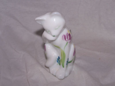 Fenton Art Glass H.P.MILK GLASS GROOMING CAT