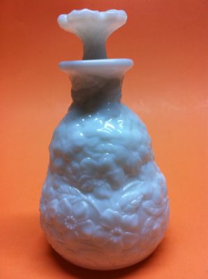 VINTAGE BEAUTIFUL FLORAL MILK GLASS PERFUME BOTTLE
