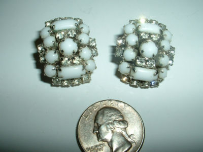 Vintage milk glass & crystal clip on earrings