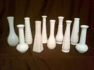 Lot of 10 Milk Glass Bud Vases- Assorted Makers