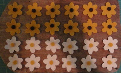 pRiMiTiVe Wool Felt Penny Rug Applique Lot~Fall Daisies~Black Eyed Susans~Flower