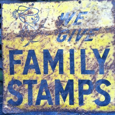 Title (ebay affiliate link): Vintage old metal advertsing grocery store stamp sign original double sided