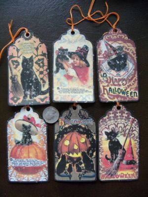 Title (ebay affiliate link): black cat HALLOWEEN primitive tags CATS goth CRAFT TAGS scrapbook HALLOWEEN CAT