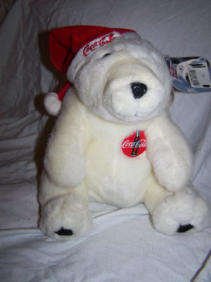 Title (ebay affiliate link): NEW COLLECTIBLE COCA COLA STUFFED WHITE BEAR WITH CHRISTMAS HATAND TAGS