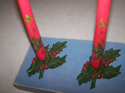 Vintage 1921 Metal Holly Candles Holders W/Candles new