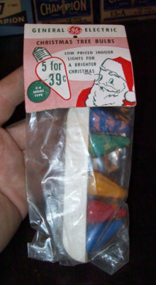Title (ebay affiliate link): VINTAGE 5 GENERAL ELECTRIC C 6 CHRISTMAS TREE LAMP BULBS IN HANG BAG SANTA