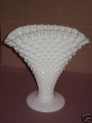 VINTAGE MILK WHITE GLASS HOBNAIL FAN VASE FENTON