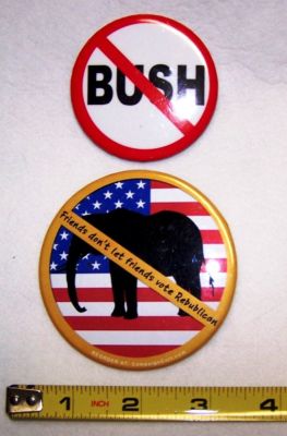 Title (ebay affiliate link): LOT OF 2 POLITICAL BUTTONS - FREINDS DONT LET FRIENDS VOTE REUPLICAN & NO BUSH