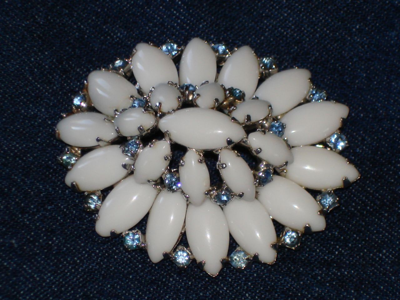 Continental Milk Glass Vintage Rhinestone Brooch Pin