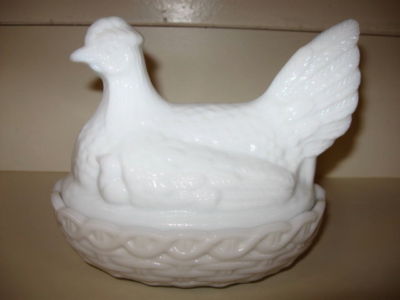 #820 VINTAGE L.E. SMITH 6" HEN ON NEST,MILK GLASS