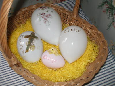 3 Large Victorian Milk Glass Easter Eggs-1890s-Very OLD