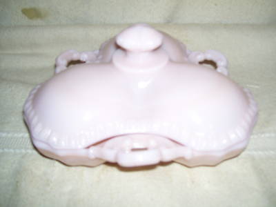 JEANNETTE PINK MILK GLASS SEPERATED COVERED PICKLE DISH