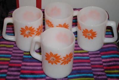 4 Vintage FEDERAL milk Glass Flower Mug CUP fire king