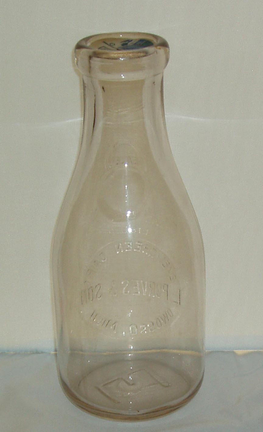 1 Quart Milk Bottle Evergreen Dairy Co Owosso Michigan