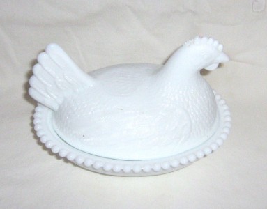 White Milk Glass Chicken on Nest Candy Dish or Jewelry