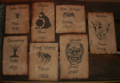 Title (ebay affiliate link): PRiMiTiVe HaLLoWeEn PoTiOn BoTtLe/JaR LaBLeS/7