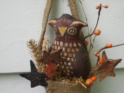 Title (ebay affiliate link): PRIMITIVE FOLKART HALLOWEEN OWL CANVAS CONE GREETER