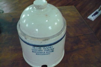 Title (ebay affiliate link): Stoneware Antique "Blue Band Sanitary Poultry Buttermilk Feeder Non Corrosive"