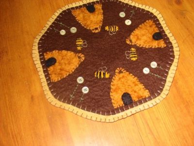 Title (ebay affiliate link): Primitive Candle Mat - Woolfelt Penny Rug- Bee Hive