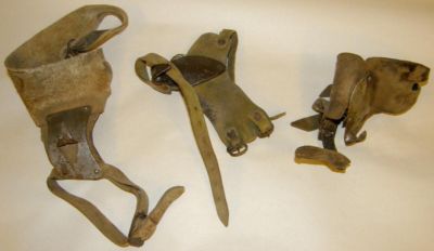 (3) VINTAGE HAND CORN HUSKER SHELLER 1 SHENANDOAH, IOWA LEATHER BINDING STRAPS
