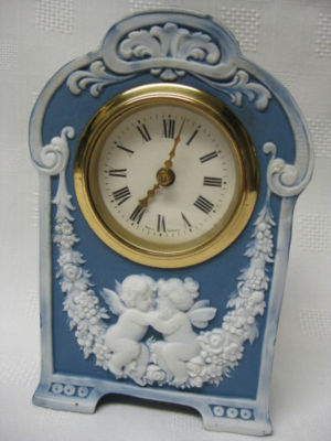 ANTIQUE GERMAN JASPERWARE CLOCK-ADORABLE CHERUBS!
