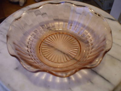 Title (ebay affiliate link): 1930s DEPRESSION PINK BOWL RUFFLED BEADED 6 3/4" WIDE