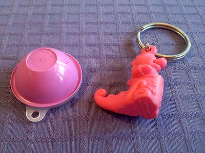 Vintage Tupperware keychain purple bowl and pink dinosaur?
