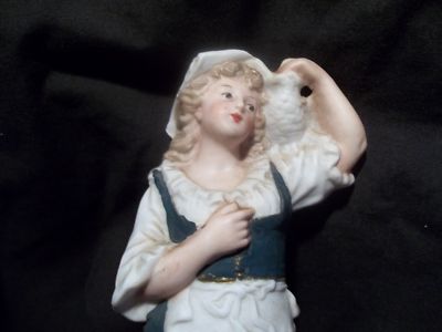 Title (ebay affiliate link): VINTAGE 8" GEBRUDER HEUBACH GERMAN BISQUE FIGURINE GIRL W/ COCKATIEL
