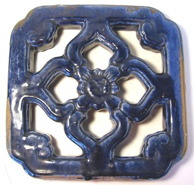 Title (ebay affiliate link): Antique Chinese Cobalt Glaze Openwork Large Pottery Temple Tile c1900
