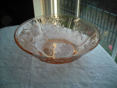 Title (ebay affiliate link): Federal Glass Co. Pink Depression Cabbage Rose Large Fruit Bowl