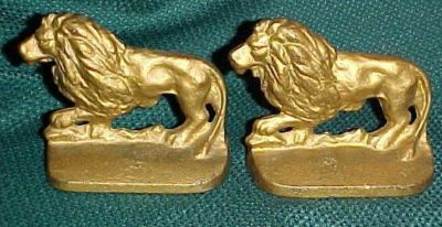 Cast Iron Lion Figure Bookends-Gold Paint
