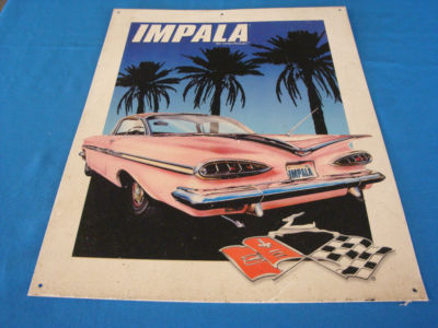 Title (ebay affiliate link): Metal Automobile CHEVROLET CAR SIGN Vintage 1959 IMPALA Two-Door Hardtop