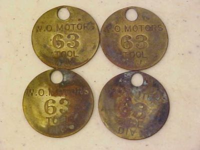 (4) WILLYS OVERLAND MOTORS # 63 TOOL DIV. KEY RING COINS