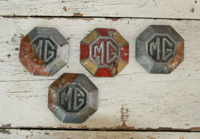 4 Antique Vintage Old MG Car Auto Metal Emblem - Emblems Medalian Logo Old Paint