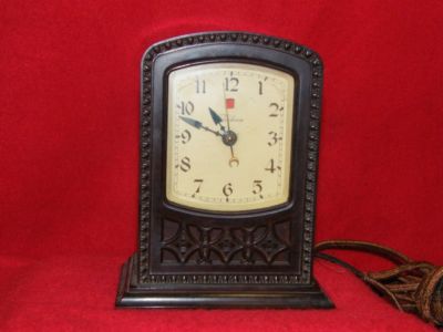 Title (ebay affiliate link): WORKING ART DECO ANTIQUE CLOCK MACHINE AGE TELECHRON BAKELITE CLOCK 1920s VTG