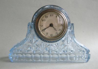 Vintage ANTIQUE BLUE PRESSED GLASS ART DECO CLOCK