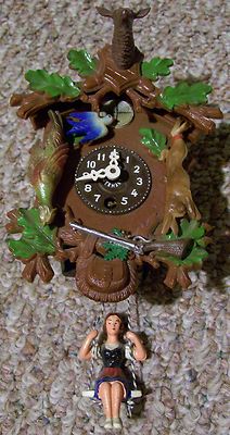 Title (ebay affiliate link): ANTIQUE MADE IN GERMANY WIND UP COOCOO CUCKOO CLOCK W GIRL PENDULUM CELLULOID